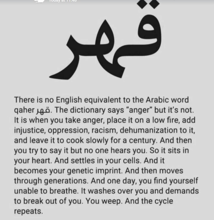 What struck me in that reflection on qahr is that it names something beyond rage. Rage still has movement in it. It rises, strikes, speaks. Qahr feels more like being overpowered. Your voice does not land. Your dignity is denied. The injury does not end when the event ends, because it continues by living inside you.